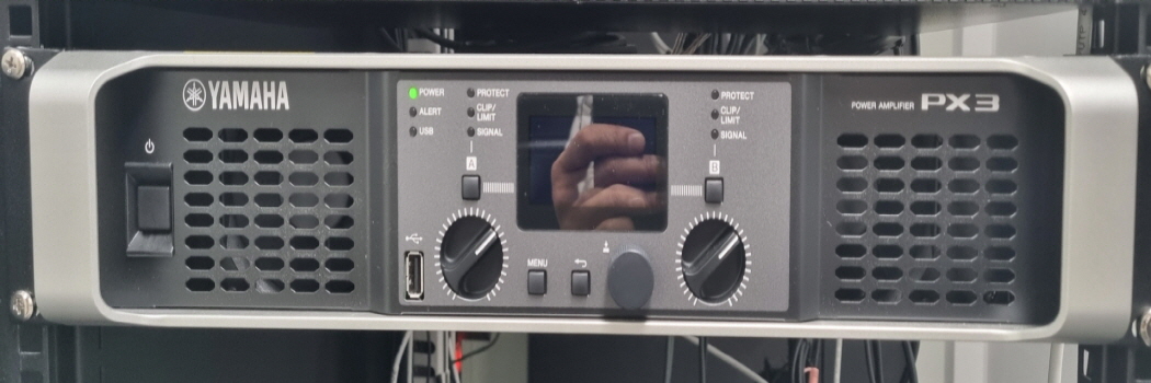 ○ RM-CG(천장 마이크) 2ea, RM-CR(DSP) 1ea, PX3(파워앰프) 1ea, VXL1B-24(라인어레이스피커) 2ea를 설치하였습니다.