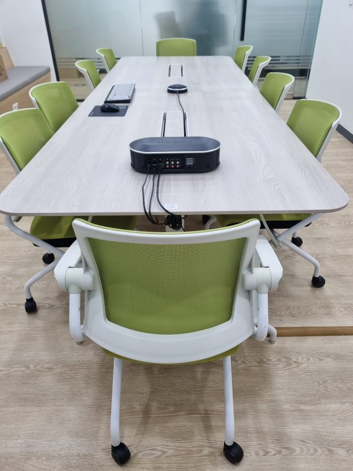○ YVC-1000(스피커폰) 1Set를 테이블 포트 박스를 이용하여 설치했으며, 지저분한 타 장비와 케이블도 깔끔하게 정리하였습니다.