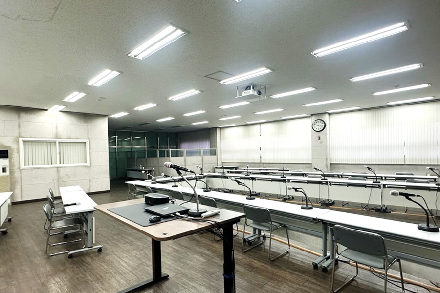 ○ YVC-1000의 최대 5대의 마이크를 연결할 수 있는 확장 기능 외에 PA 아날로그 마이크 및 스피커와도 완벽하게 호환되는 기능을 이용한 사례입니다.