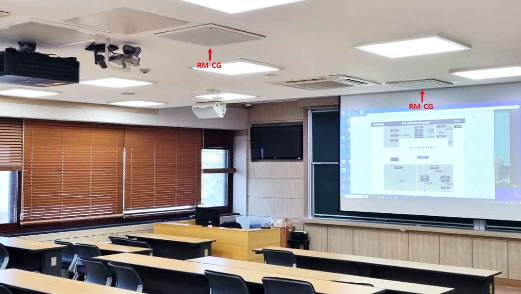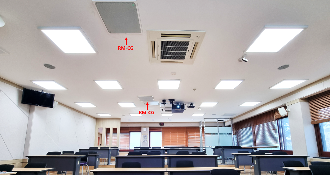 ○ 학생 수 50명이 넘는 강의실임에도 RM-CG 2대로 공간 전체를 커버하였습니다.