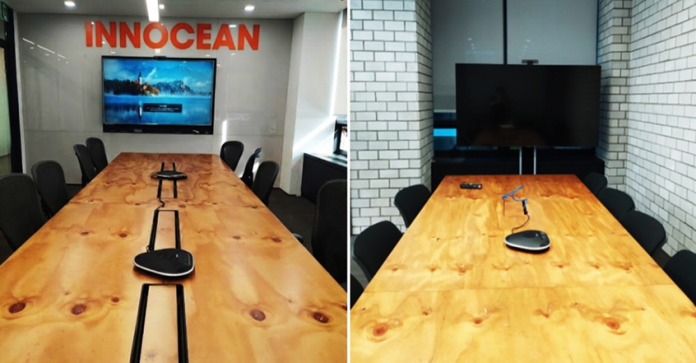 ○ 일자형 테이블, 6~12명(25개 회의실 상이)